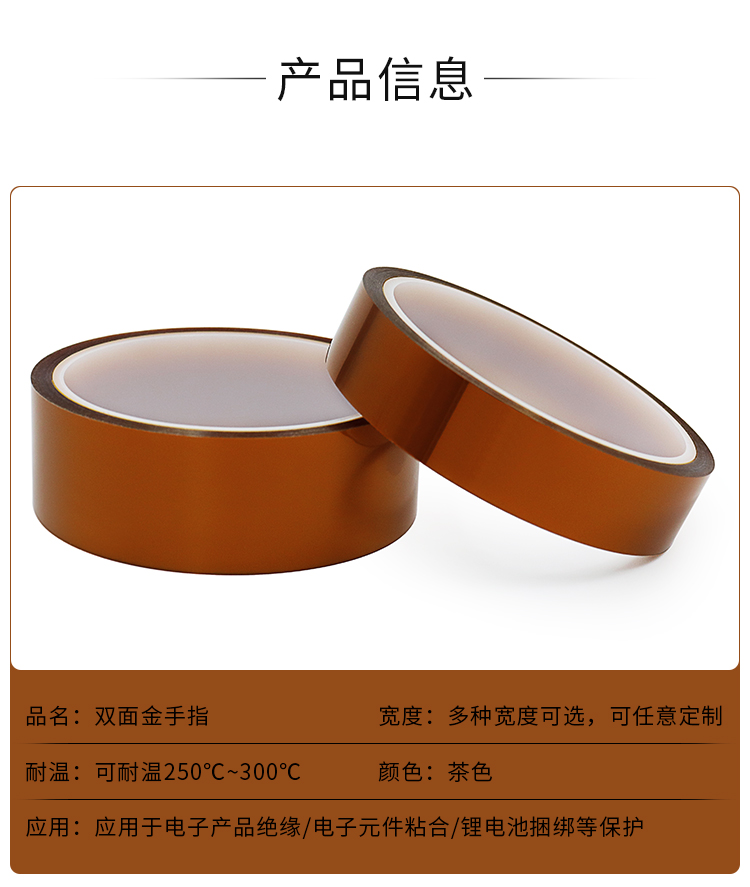 - 金手指膠帶,又稱Kapton膠帶或聚酰亞胺膠帶,該膠帶以聚酰亞胺薄膜為基材,單面涂布高性能有機(jī)硅壓敏膠,有單面氟塑離型材料復(fù)合或不復(fù)合兩類材料。涂布高精度達(dá)到±2.5um,無刮痕,拉絲等現(xiàn)象·,剪切性佳,易沖型模切加工,具有優(yōu)異的耐高溫性和耐溶劑性能!