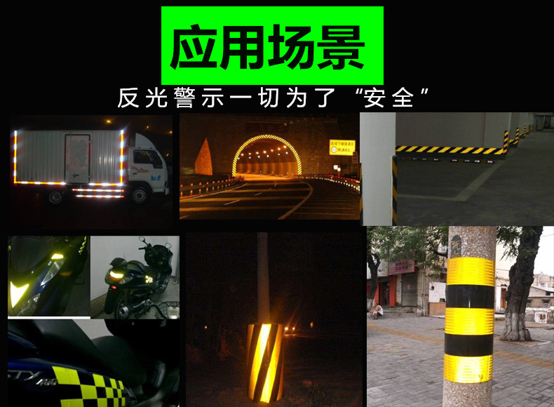 - 本品常用于車間、酒店、辦公室、商場、停車場、工地、走廊、樓道 作為警示用品主要貼地板、立柱、玻璃、車身,因材料反光所以更能起到警示作用!
