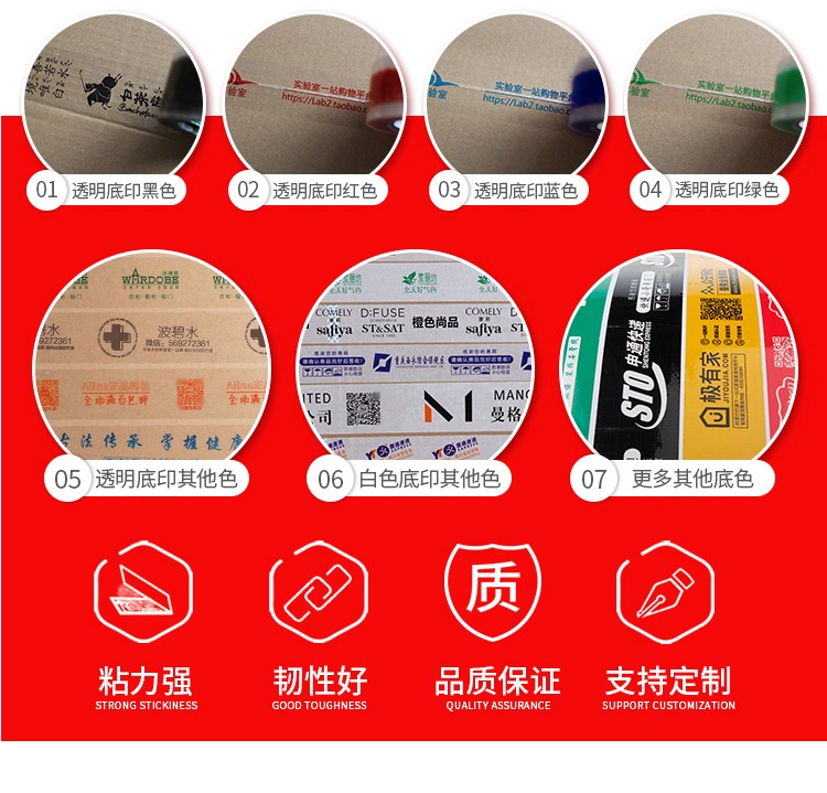 - 以聚丙烯膜( OPP )為基材,涂上壓敏膠制造而成。具有高抗力、粘度佳、質(zhì)輕、低成本等優(yōu)點(diǎn)。 適用于各種包裝封粘固定,特別是在紙箱的封粘上,并能配合自動 包裝機(jī)封箱,已成為包裝材料之主流。
